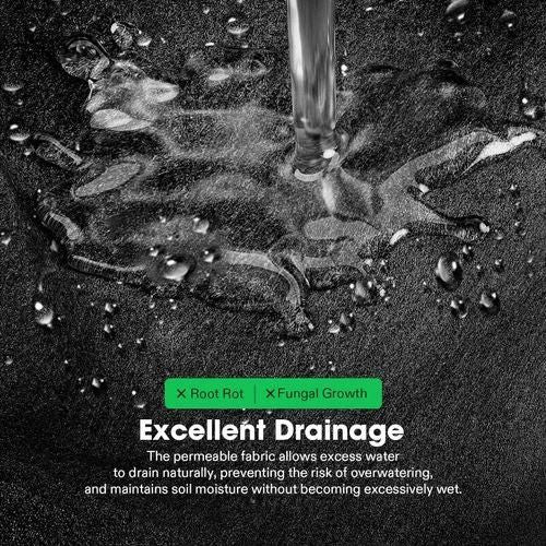 The grow bag does not retain excess water; it allows the roots to breathe for healthier and more vigorous growth. It prevents leakage and is tear-resistant.